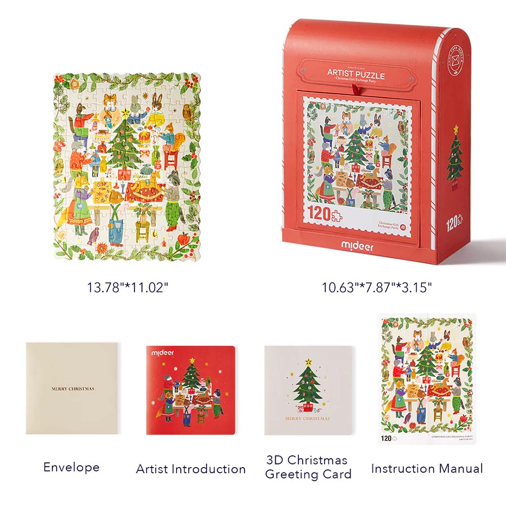 Celebrate the season with this 120-piece holiday puzzle featuring stunning artist-designed artwork. Packaged in a festive mailbox-style box, it includes a 3D pop-up card, perfect for gifting or collecting.